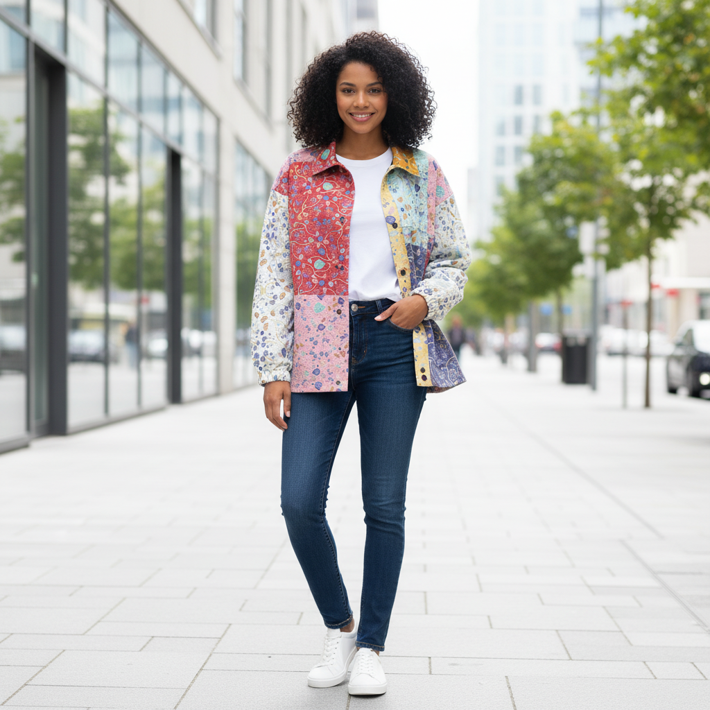 AOP Unisex Casual Lapel Jacket Kukloso Patchwork Collage No 127