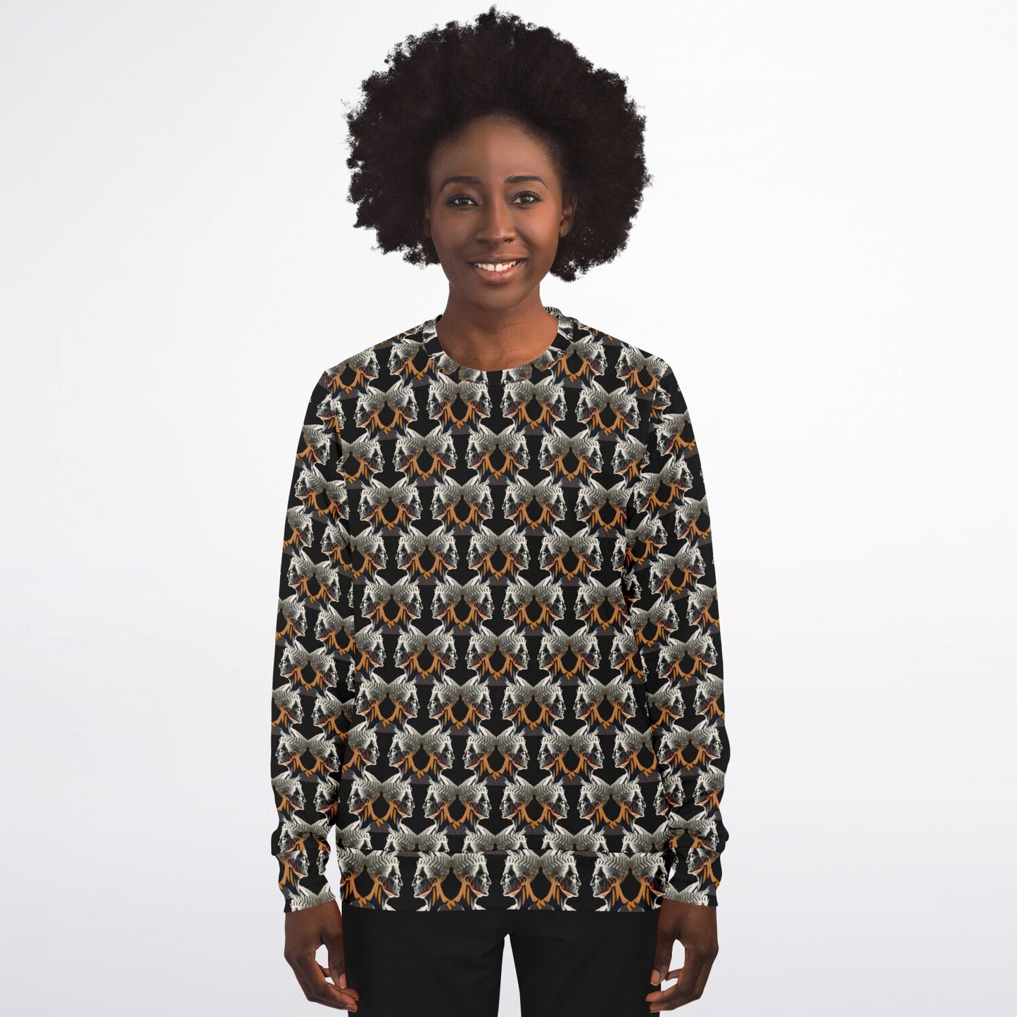 Athletic Sweatshirt - AOP Kukloso Cubist Faces No 2 on Black - Free Shipping