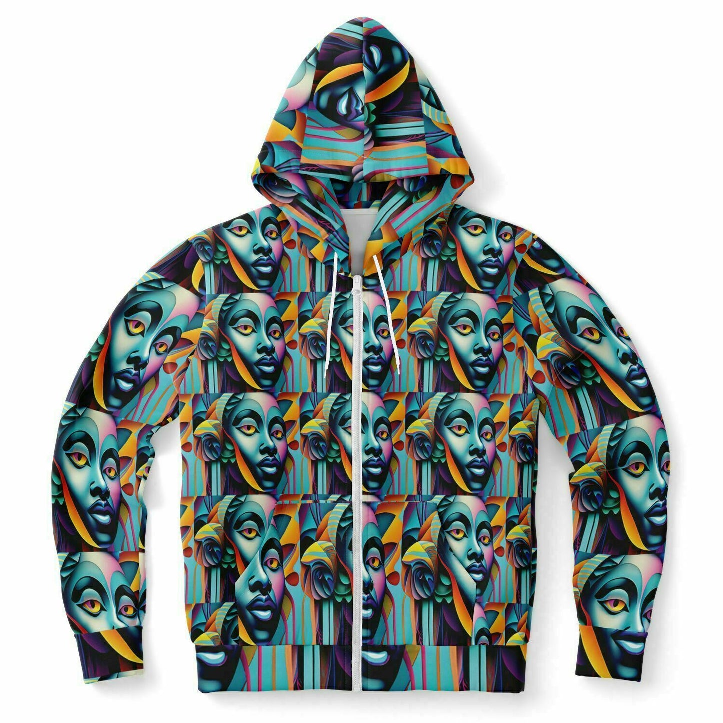 Fashion Zip-Up Hoodie - AOP Kukloso Cubist Faces No 2 - Free Shipping