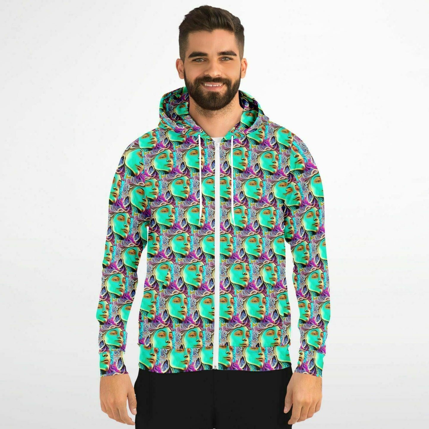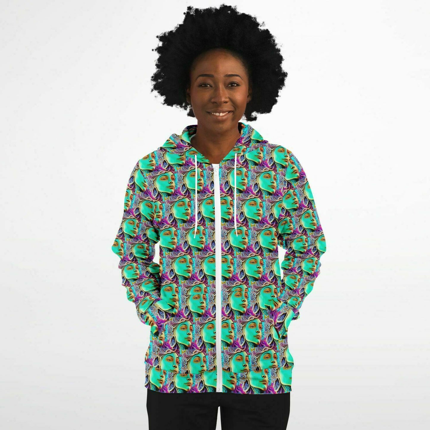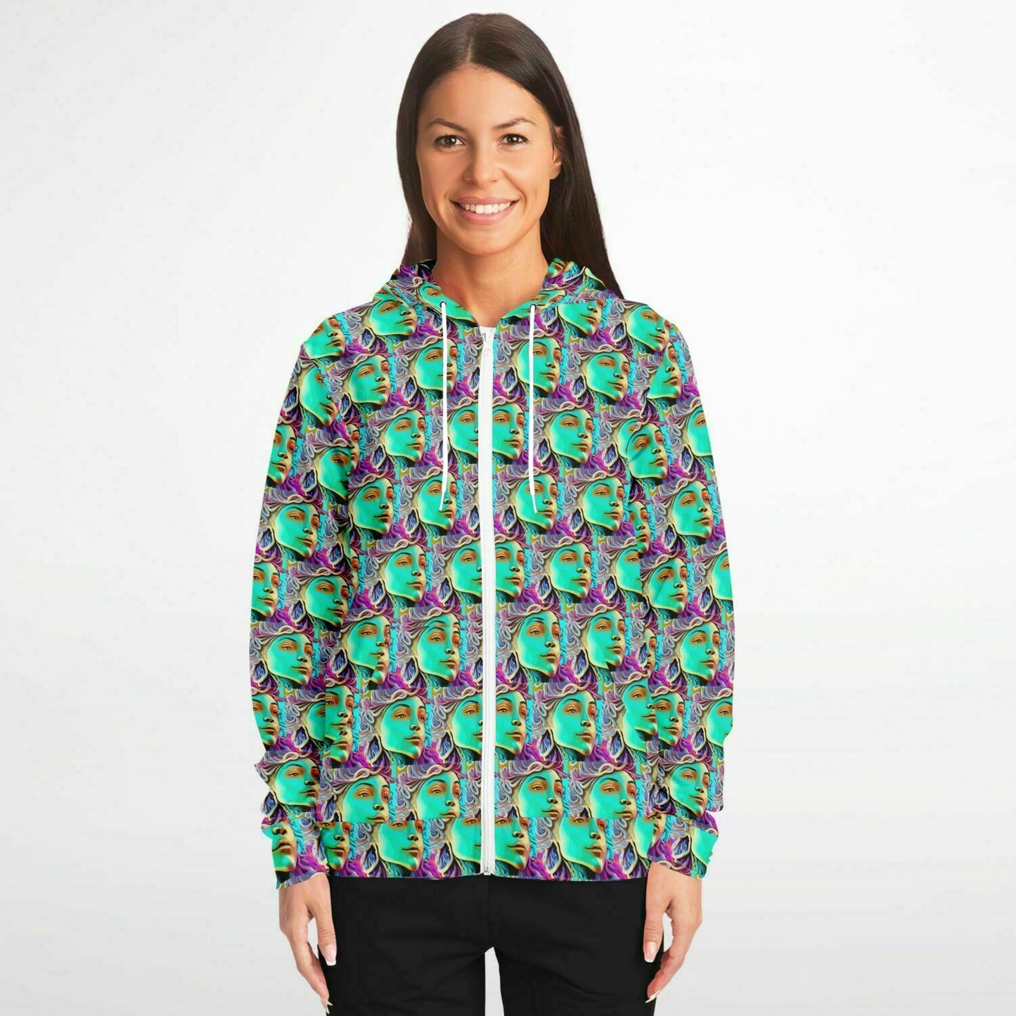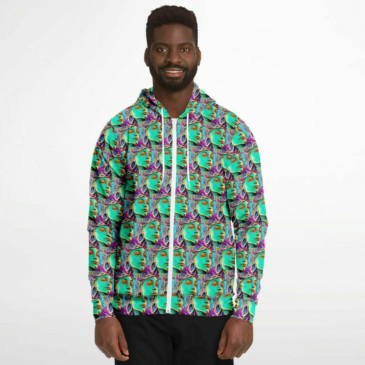 Fashion Zip-Up Hoodie - AOP Kukloso Cubist Faces No 4 Green - Free Shipping - Free Shipping