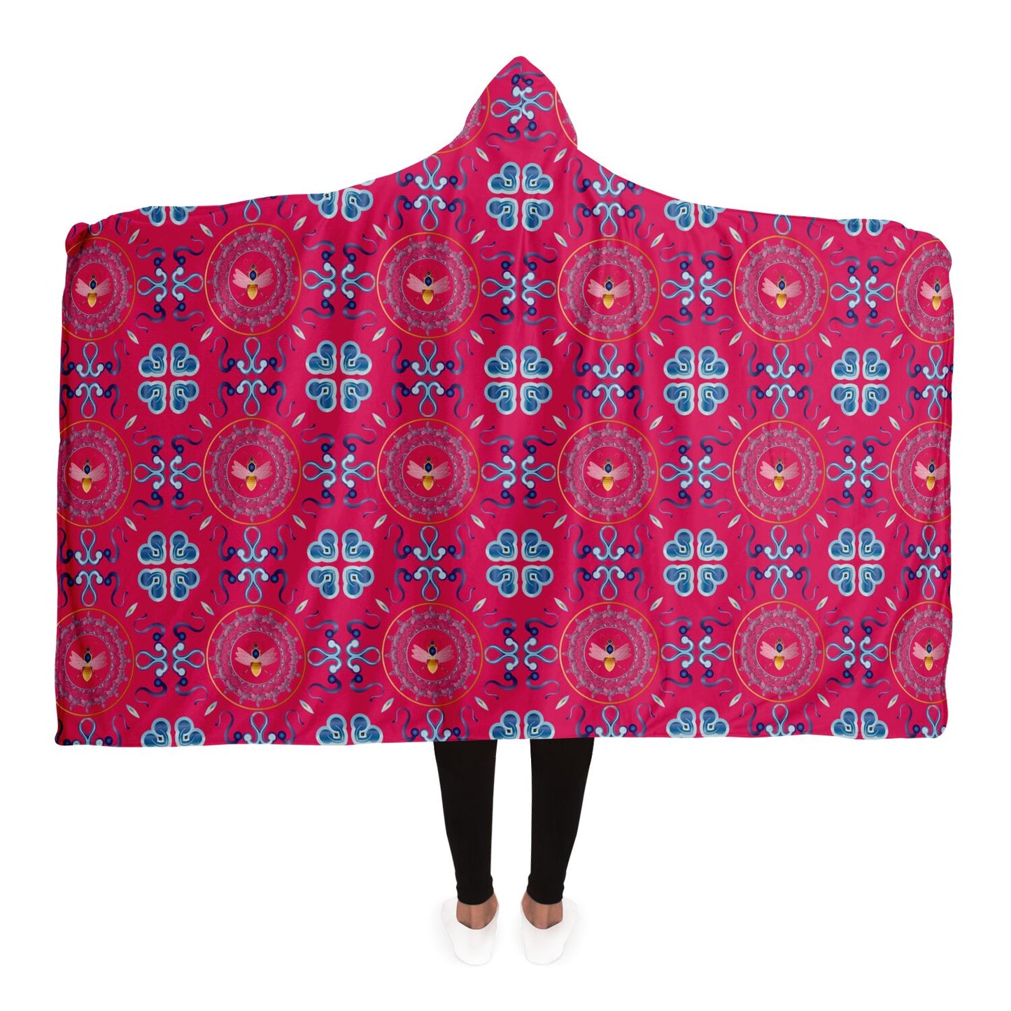 Hooded Blanket - AOP Mandala No 154 No 4 Honey Bee Aqua & Blue on Dark Pink