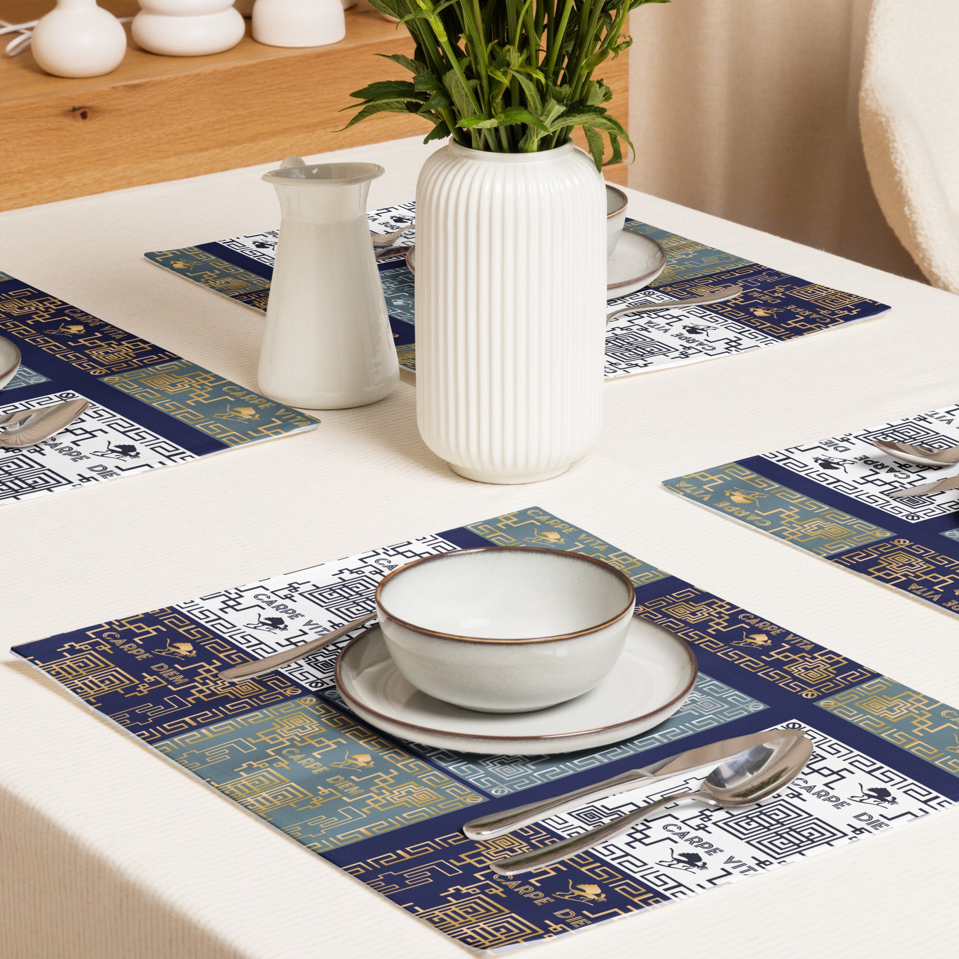 Show off your taste and dine in style! Every set comes with 4 high-quality, water-resistant placemats, all with a unique pattern for that special touch. Whether for daily dining or festive feasts, these placemats will add a dash of personal charm to your every get-together.