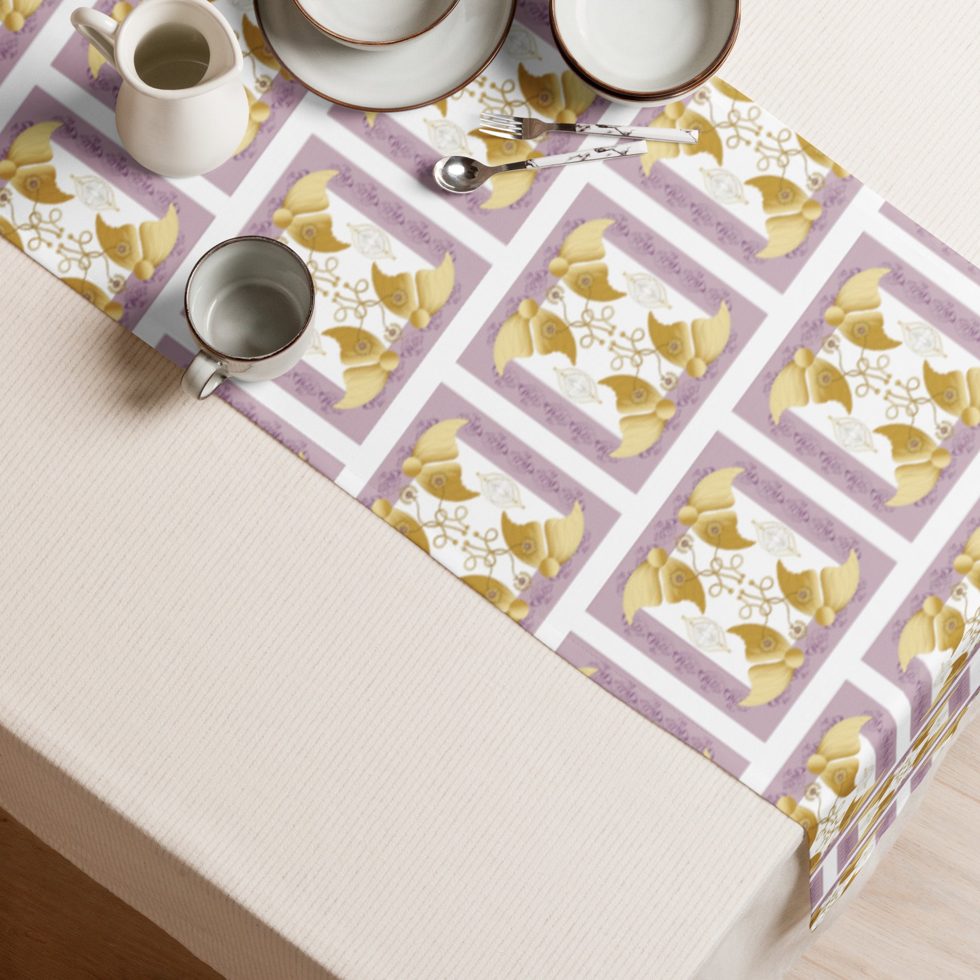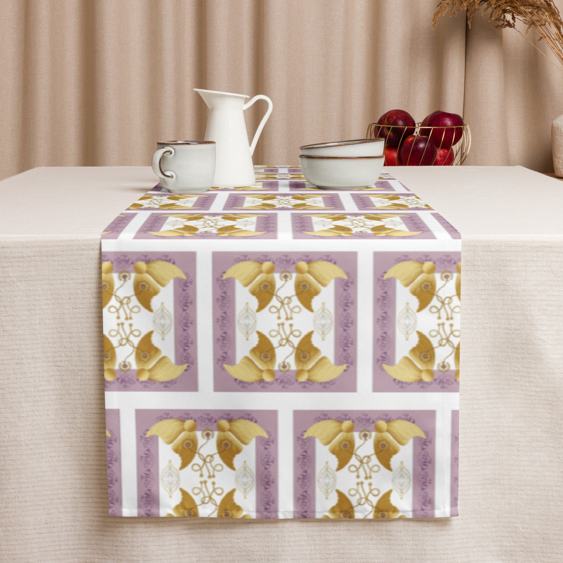 Crafted from resilient fabric, this table runner is both soft and enduring. Whether for everyday elegance or holiday charm, it will make meal times with loved ones a little more special. Treat yourself to this delightful table accessory or consider it as a thoughtful gift for someone special.