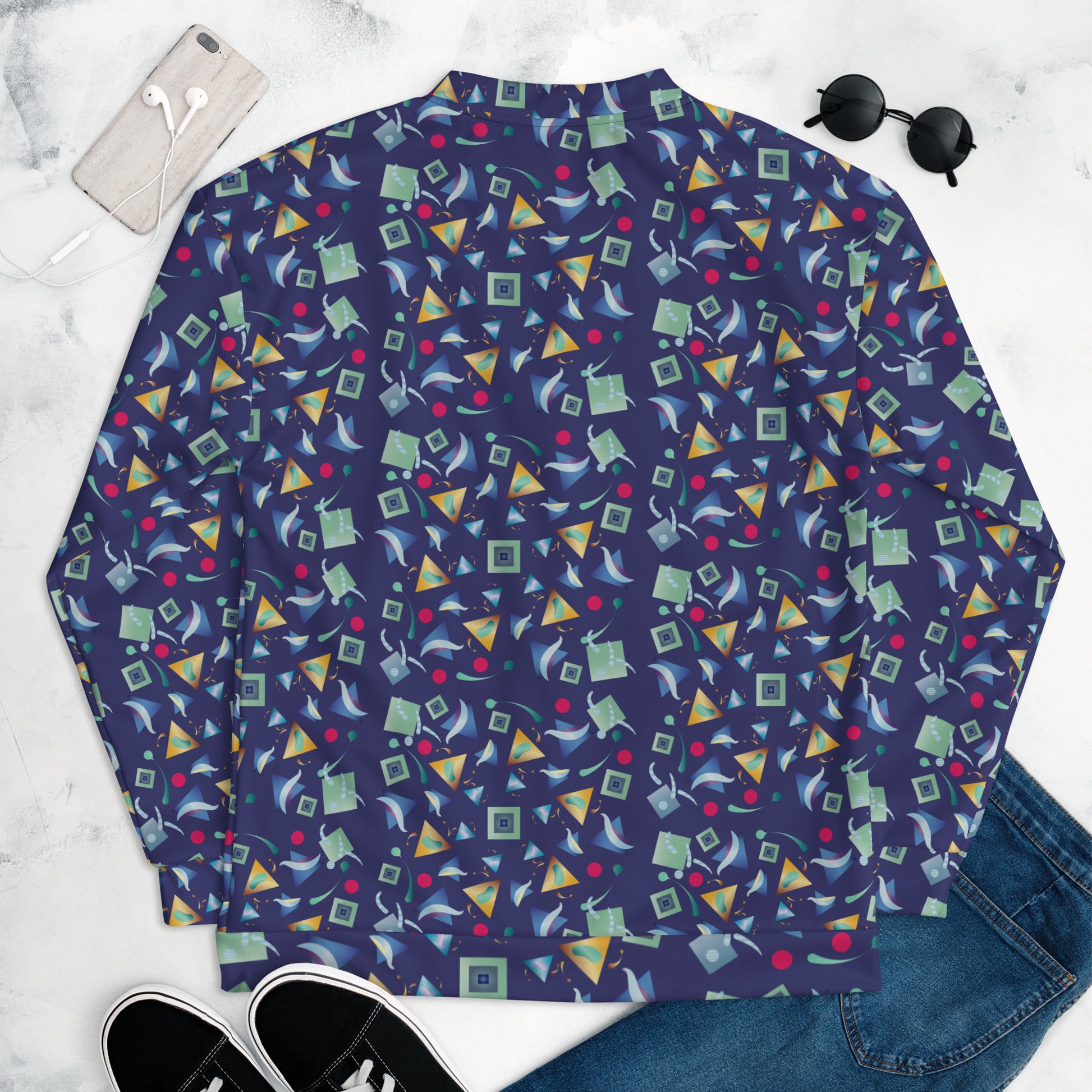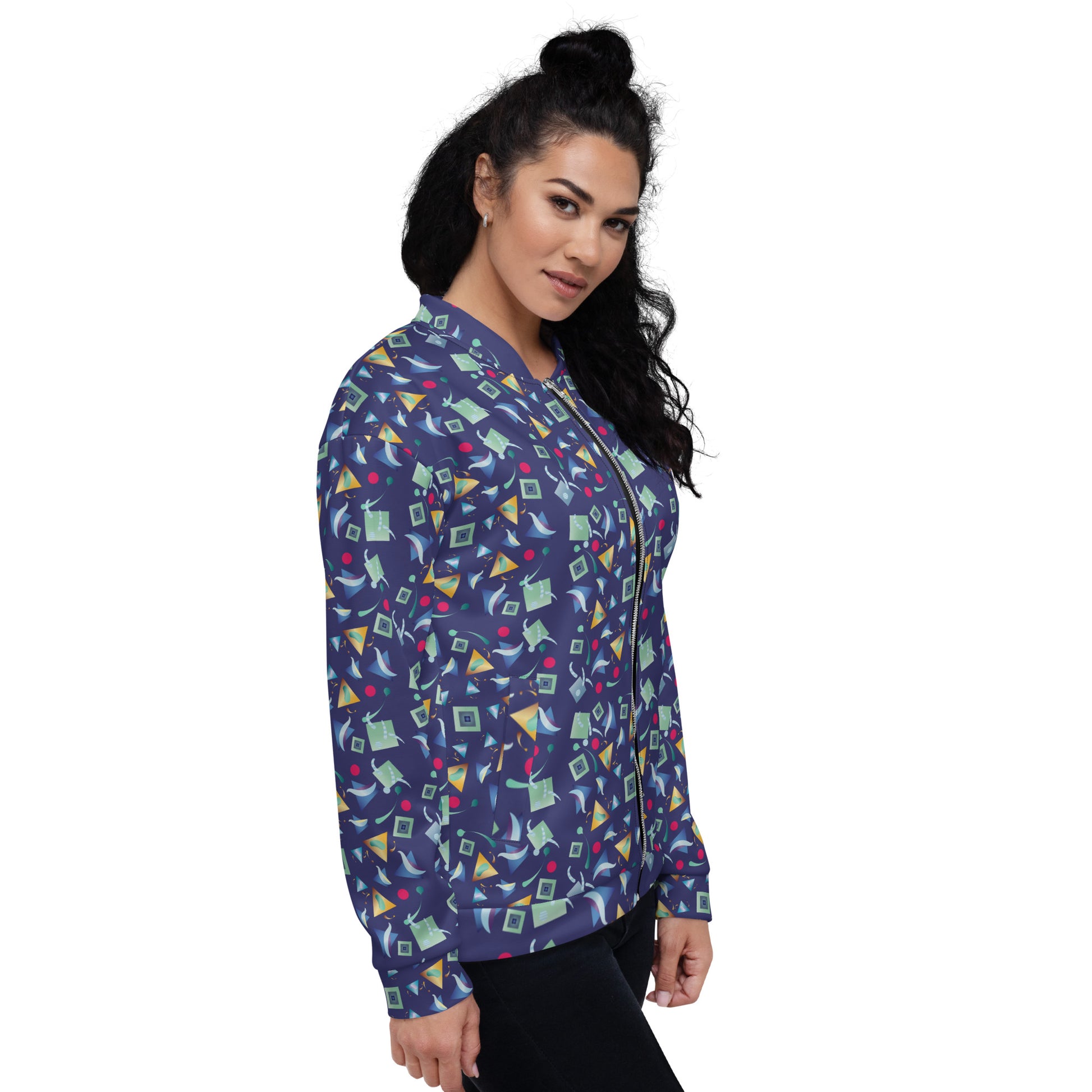 Add a little zing to your wardrobe with this vibrant All-Over Print Bomber Jacket. Wear it on a basic t-shirt, or layer it on top of a warm hoodie—it’ll look great either way. With a brushed fleece inside, and a relaxed unisex fit, this Bomber Jacket is just the stuff of the dreams, so be quick to grab yourself one!