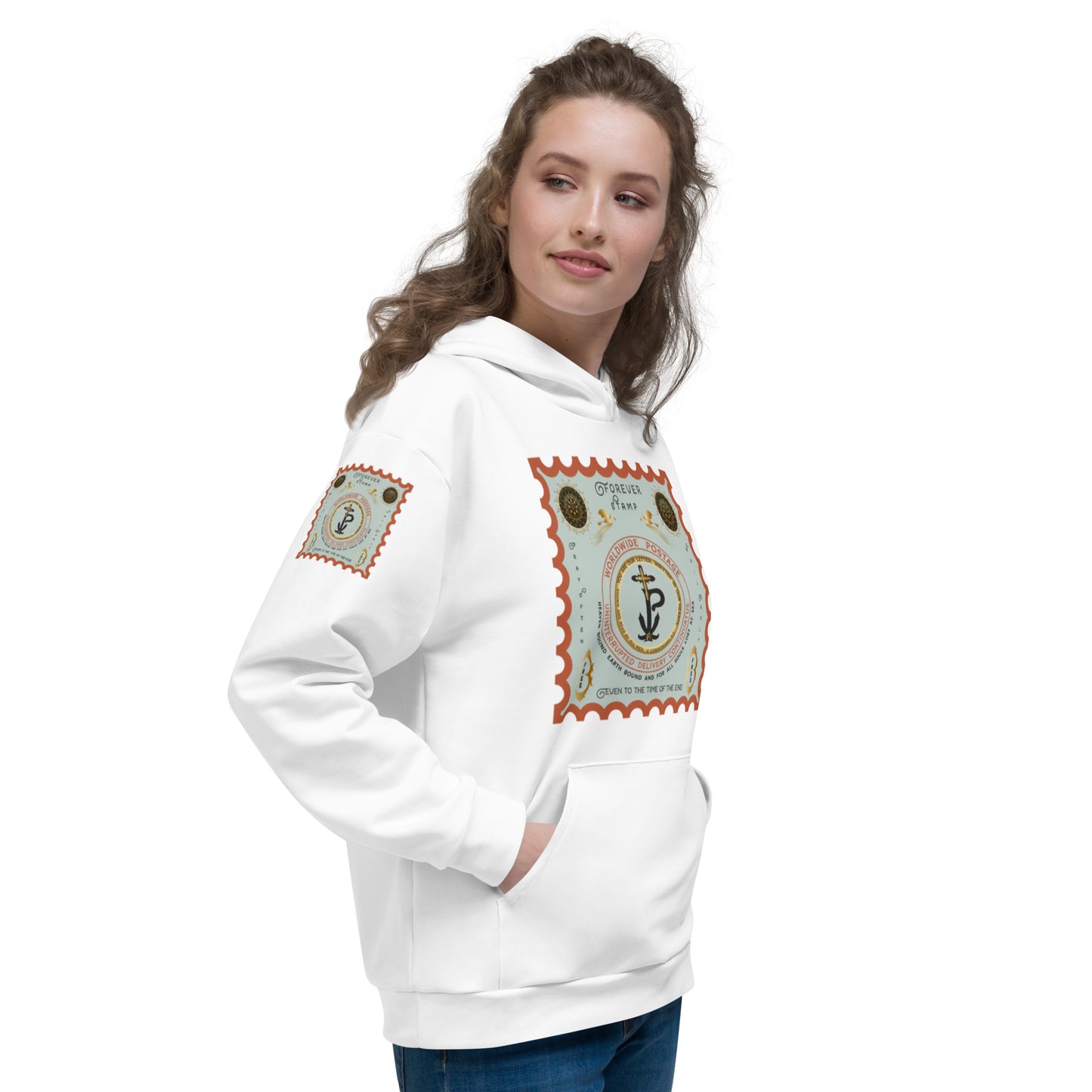 Unisex Hoodie Kukloso "Forever Stamp, Even To The Time of The End' White - Free Shipping