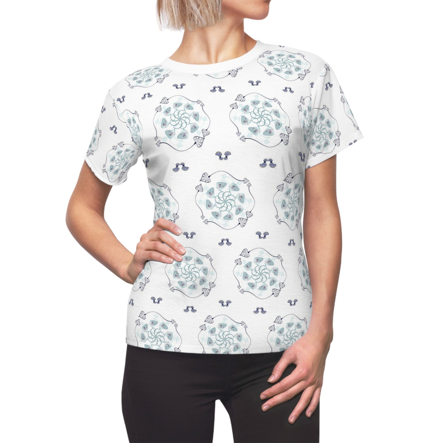 Women's Cut & Sew Tee (AOP) KuklosoAG No 22 Aqua, Navy Shapes on White - Free Shipping