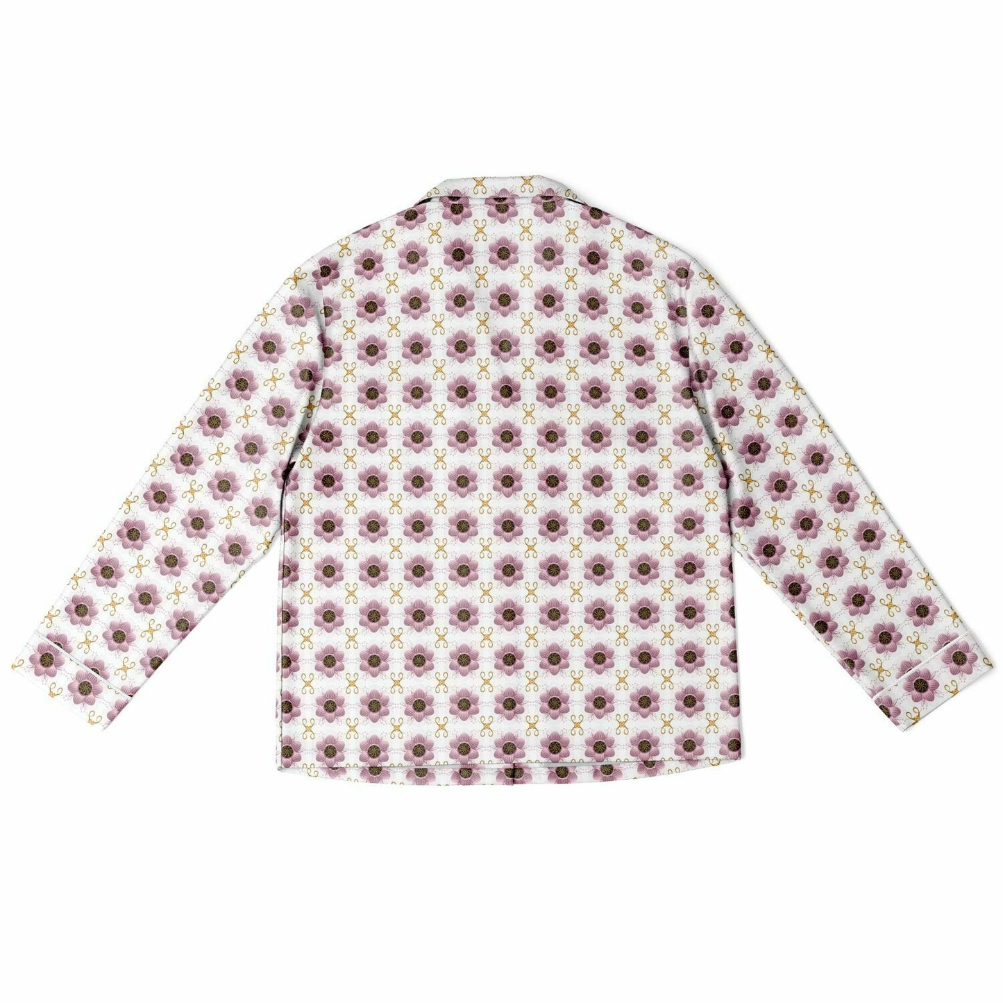 Women's Satin Pajamas - AOP Kukloso Melange de fleur No 30 Mini-Mandala pattern with Pnk & Gold accents on White - Free Shipping