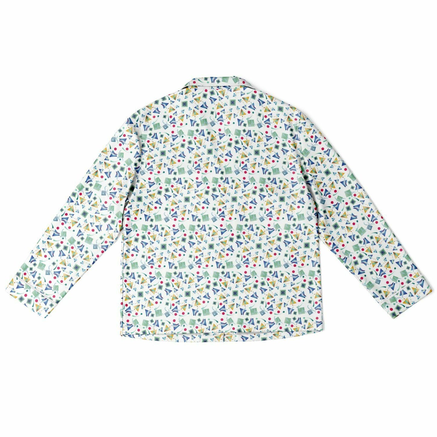 Women's Satin Pajamas - AOP Kukloso Whimsical No 11 Multi-Geometrical shapes & colors on White - Free Shipping